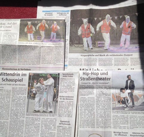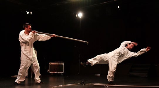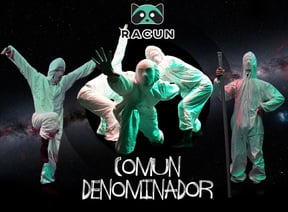 -Common grounds: (25 or 50 min, theater or street) award winning performance from Racun. has been presented in different festivals in many countries. Three characters embark on a journey through evolution, emotions and different references, to find ways to communicate and resolve common questions about survival and spirituality. Through body language and music as unifying elements, transversal to humanity, we interact with the public to find the attitudes and responses we have to give meaning to our existence.