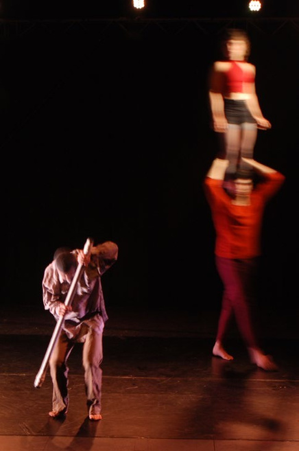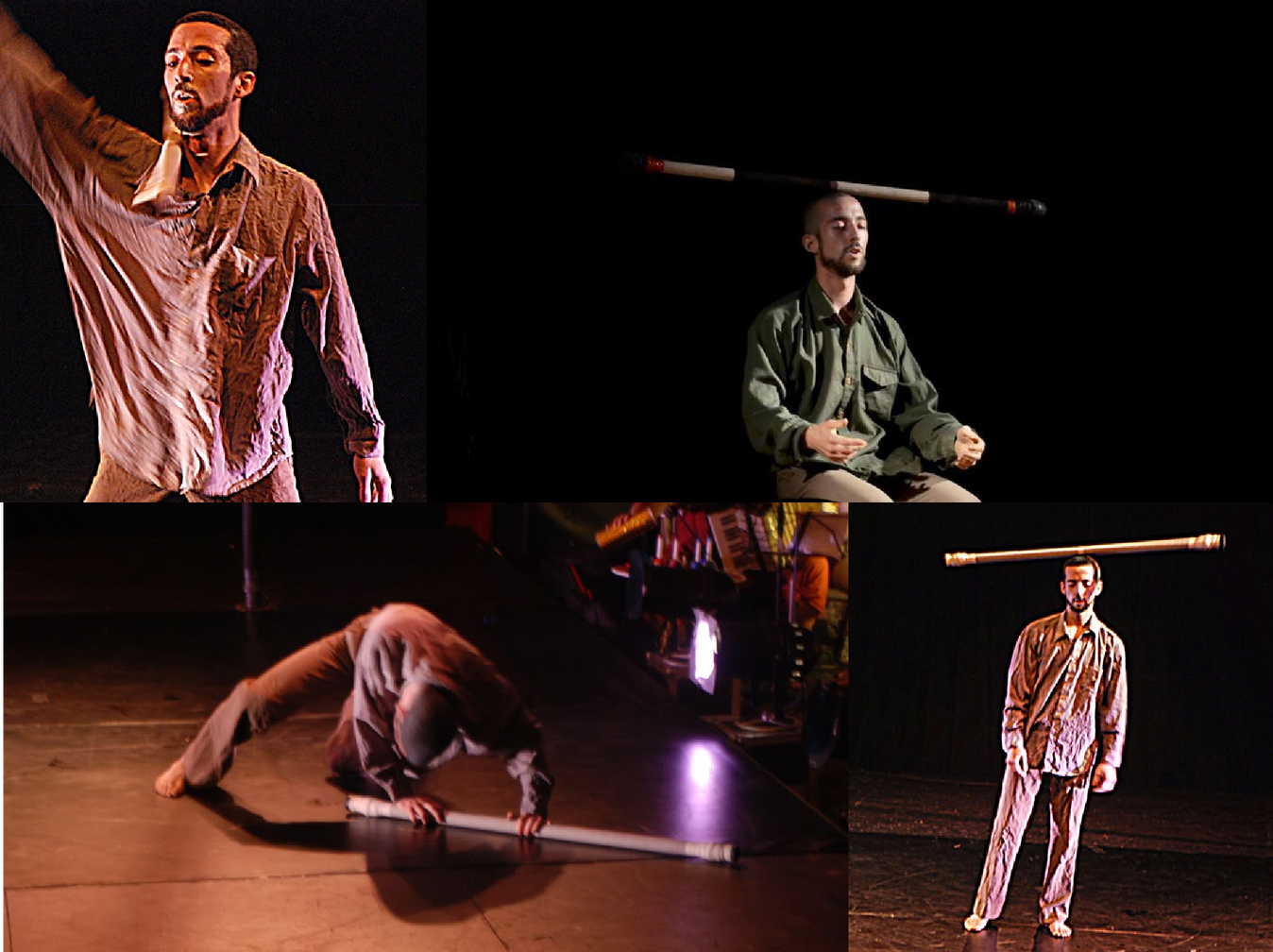 -Mirage: (10 to 30 min, street or theater) Work done by Pablo Sanchez, from Chile. A character finds himself in a desert space, where he fights with a current of wind until he finds the object that caused it; In his encounter with the object he manages to stop the blizzard, where he encounters mirages that place him in other deceptive contexts, where in the end it results in a fight with a force contained in this "staff" (object), to which he ends up combining in a dance, for a time, where he ends up trying to free himself from these forces that dominate him, until this power once again dominates him.