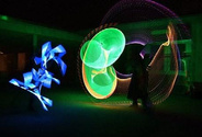 -Light show: (10 to 30 min, Street or theater, dark places) the idea of the Racun light show is to leave everyone with an open jaw. whatch how the light turns into life with a show that is mixing juggling and object theater to impress the audience