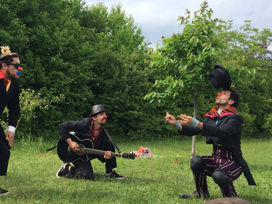 -Radio Racun: (10 to 60 min, street or theater) A music show made by clowns, come to dance and laugh with the racun artists who are here to make a musical party with the audience and songs from all over the world.