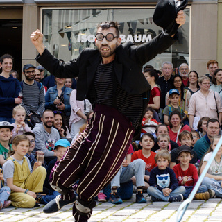 -The tennis player: (10 to 30 min, Street or theater) Clown show made by Eugenio Costa from Urugay. In a classic clown technique we can see Oscurito, a retired professional tennis player who is trying to recover his life after his tennis racket lost all their cords, making him unable to play ever again.